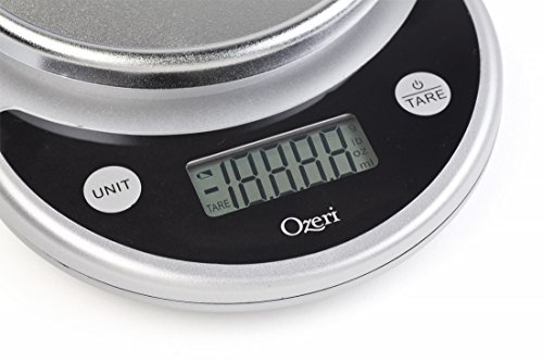 Proudly selected by the Dana Farber Cancer Institute for a Harvard Medical School study on the link between weight loss and the prevention of breast cancer, the new Pronto Digital Kitchen Scale by Ozeri is an uncompromising multifunction scale for the kitchen and home. The Pronto is built with the latest generation in sensor technology to ensure an accurate and immediate response for the fast-paced chef, and features a newly enlarged weighing platform – one of the largest in its class, to accommodate larger bowls and food items. Elegantly designed with a refined finish, the Pronto also doubles as a postage machine for your mail or a scale for your children’s science projects. The ultimate companion for the serious cook, the Pronto’s large Unit button lets you change the unit of measurement with push-button ease, with 5 different units to choose from (g, lbs, lbs:oz, oz, ml) – e.g. convert (539.8 grams) to (1.19 pounds) to (1 pound 3 ounces) to (19.04 ounces) to (539.8 ml). The widescreen LCD displays provides wide viewing angle for the fast moving chef. Manufactured to rigorous quality specifications, the Pronto weighs up to 11.24 pounds (5100 grams) in graduations of just 0.05 ounces (1 gram) to help you achieve your diet and weight goals. The Pronto also features an ever handy Tare button which automatically subtracts the weight of any bowl or container to calculate the net weight of your ingredients. The Pronto’s Tare and Unit buttons provide an audible and tactile click confirmation so you never have to push twice when preparing meals in a hurry. The Pronto’s aesthetic design and availability in multiple colors complement any kitchen decor, and it cleans quickly and stores easily. The Pronto runs on 2 AAA batteries (included) with an easy-access battery compartment, and 2-minute automatic power-off to preserve battery life. It also ships with a bonus set of batteries, and is guaranteed by Ozeri’s No-Hassle Warranty.