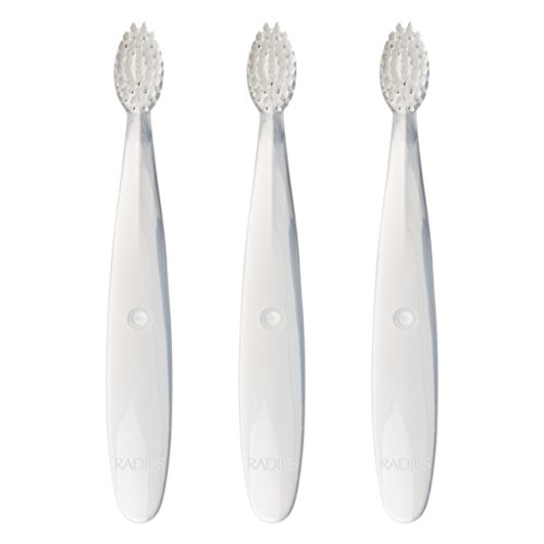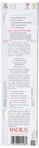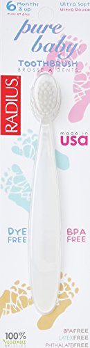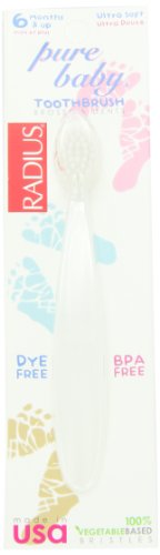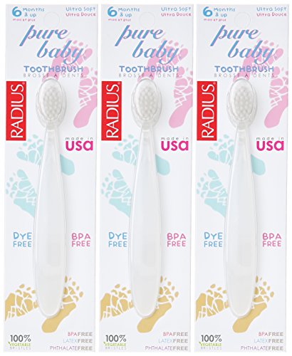 - Each pack contains 3 RADIUS Pure Baby Toothbrushes for age 6 months and up. DYE- FREE. No color selection available.